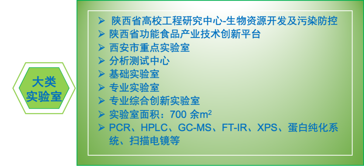 生物工程专业目前拥有本科教学实验室和研究生实验室面积共计733 m2,下设基础实验室、专业实验室、分析仪器室、专业综合创新实验室,开设《微生物学实验》、《生物化学实验》、《食品分析》和《生物工程专业综合实验》等实验课程,是进行本科教学实验、创新创业实践、教学研究、实验演示等教学、实践和科研活动为一体的教学实践场所。通过实验及实践教学可以使学生掌握专业实验的基本操作、实验技术及各种生物物质的定量与定性分析方法,加深对专业基本理论知识的理解,并使学生养成实事求是的科学态度和严谨的工作作风,为社会培养实践型应用人才。