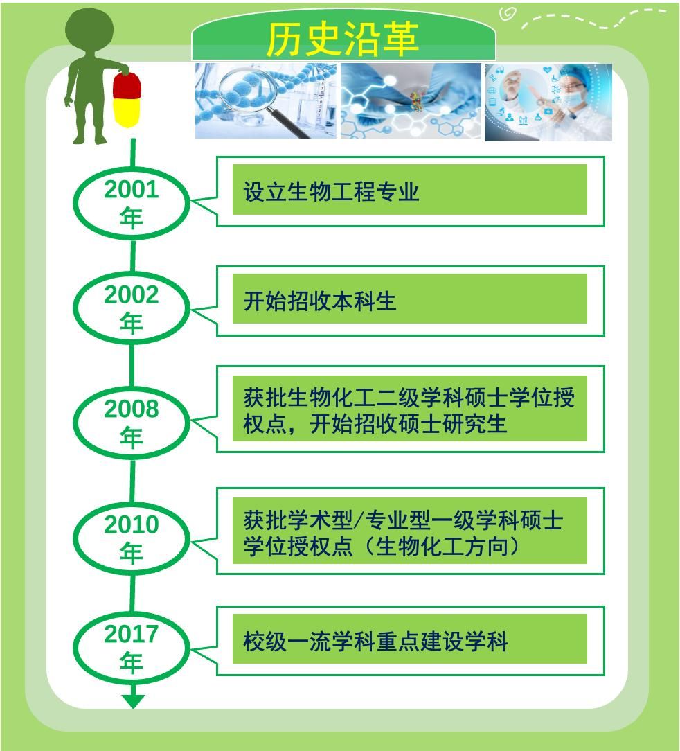 本专业始建于2001年,设置于Taptap点点(188改名)生物工程系,2002年开始连续招收本科生。2008年获批生物化工二级学科硕士学位授权点,开始招收硕士研究生。2010 年生物化工所属一级学科化学工程与技术获批一级学科硕士学位授权点。2017 年化学工程与技术学科被确定为校级重点建设学科。依托生物化工学科,拥有省级高层次研究团队2个,省级化学实验教学中心1个,省级重点实验室及工程研究中心2个,西安市重点实验室1个,教学实践基地10个。具有学士学位和硕士学位授予权,拥有从本科到研究生的人才培养体系。本专业现有省级高层次研究团队2个,国家级高层次人才1人,省市级高层次人才2人,已形成了一支年龄、学历和学缘结构合理、业务精湛、充满活力的教学团队梯队。