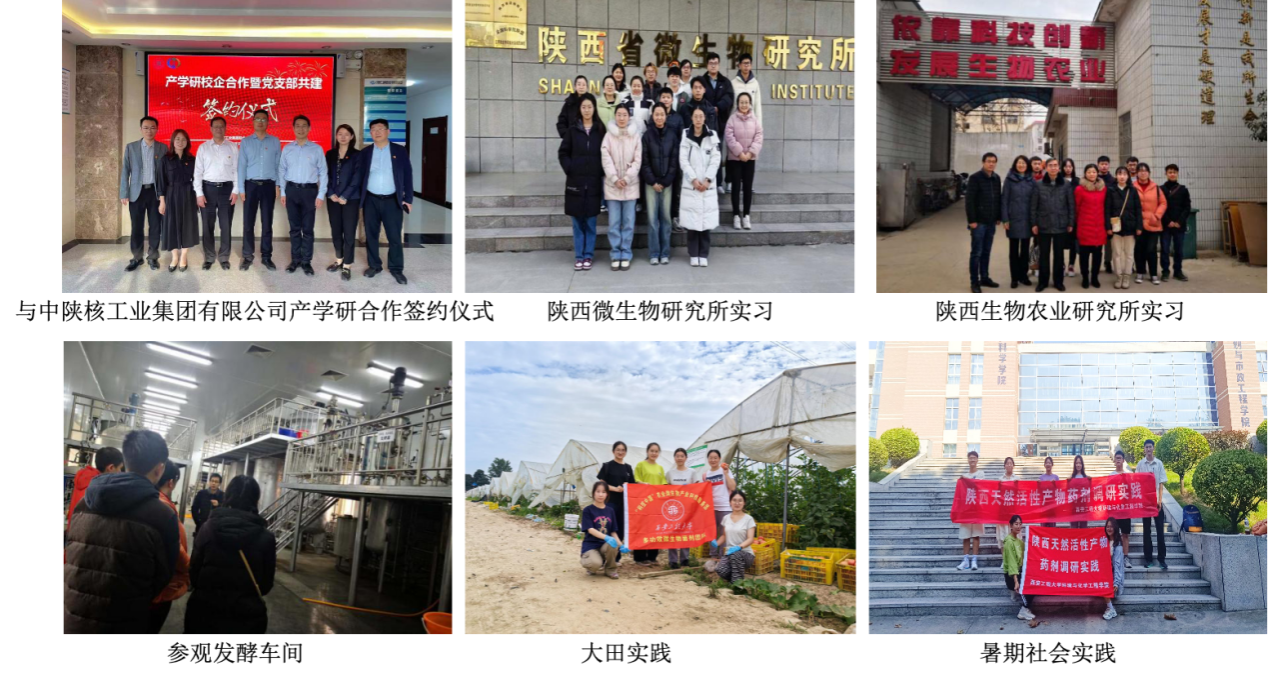 实践是生物工程专业本科教学的重要环节,也是最能体现工程教育理念及生物工程专业特色的关键环节,包括认识实践、生产实践和毕业实践三大模块。生物工程专业已建立了十多家实践教学基地,包括:陕西省微生物研究所、陕西省生物农业研究所、中陕核工业集团有限公司、陕西巨子生物有限公司、陕西鸿生生物有限公司、西安禾丰饲料科技有限公司等知名研究机构和大中企业,涵盖基因工程、制药、食品、保健品、中药原料提取等领域,形成了产、学、研相结合的教学实践模式。在实践中初步了解生产质量管理规范、加深理解生产工艺流程的设计、能熟练进行生产环节的操作实训、提高产品分析检测、质量保证等实验操作技能,引导学生树立正确的职业道德观、价值观,加强学生的生产安全知识和环保意识,培育出符合工程教育认证理念的优秀专业人才。