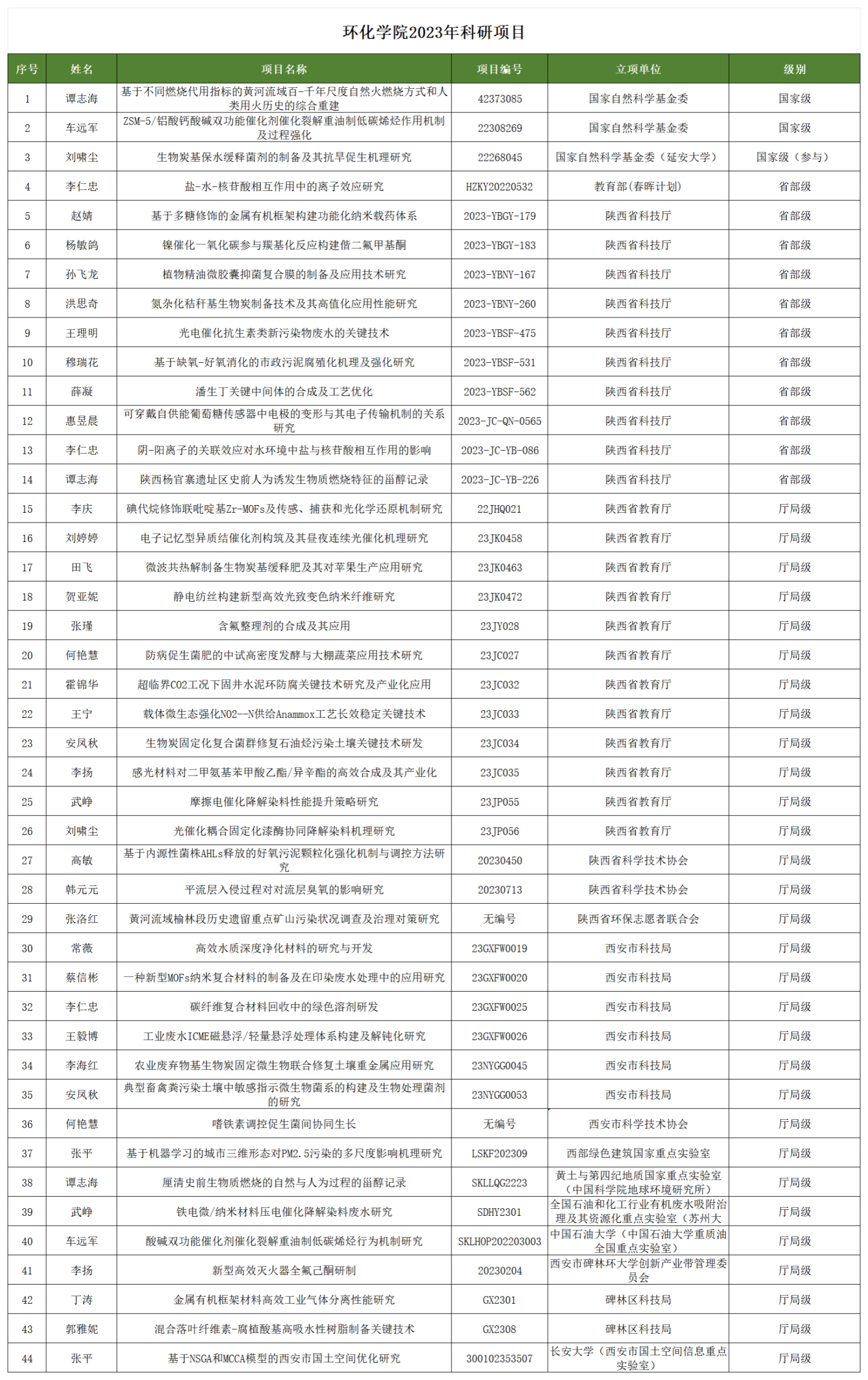 学院以创新能力和学科建设为重要抓手,大力提升教师科研创新能力,对各类纵向项目申报工作进行严抓组织落实,抓实抓细申报过程管理,组织专家进行多次指导,全方位提升教师项目申报书质量。通过推动教师把握申报各类纵向项目为契机,进一步推动学院内涵式发展,全力推进“十四五”规划和“一院一策”行动计划的贯彻实施。2023年科研项目取得了可喜的成果,新增纵向科研项目44项,其中国家级项目3项,省部级项目11项,厅局级项目30项,纵向到款经费位于我校首位,具体项目清单如下。