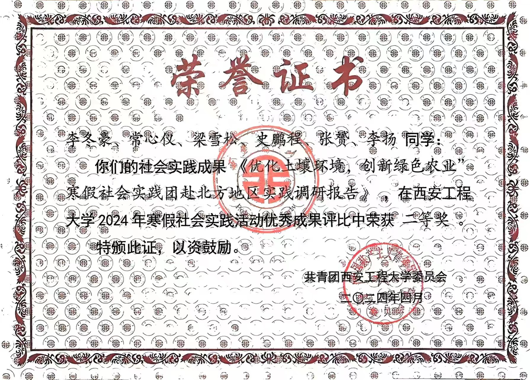 我院“优化土壤环境,创新绿色农业”社会实践团队获大学寒假社会实践优秀服务队和优秀成果