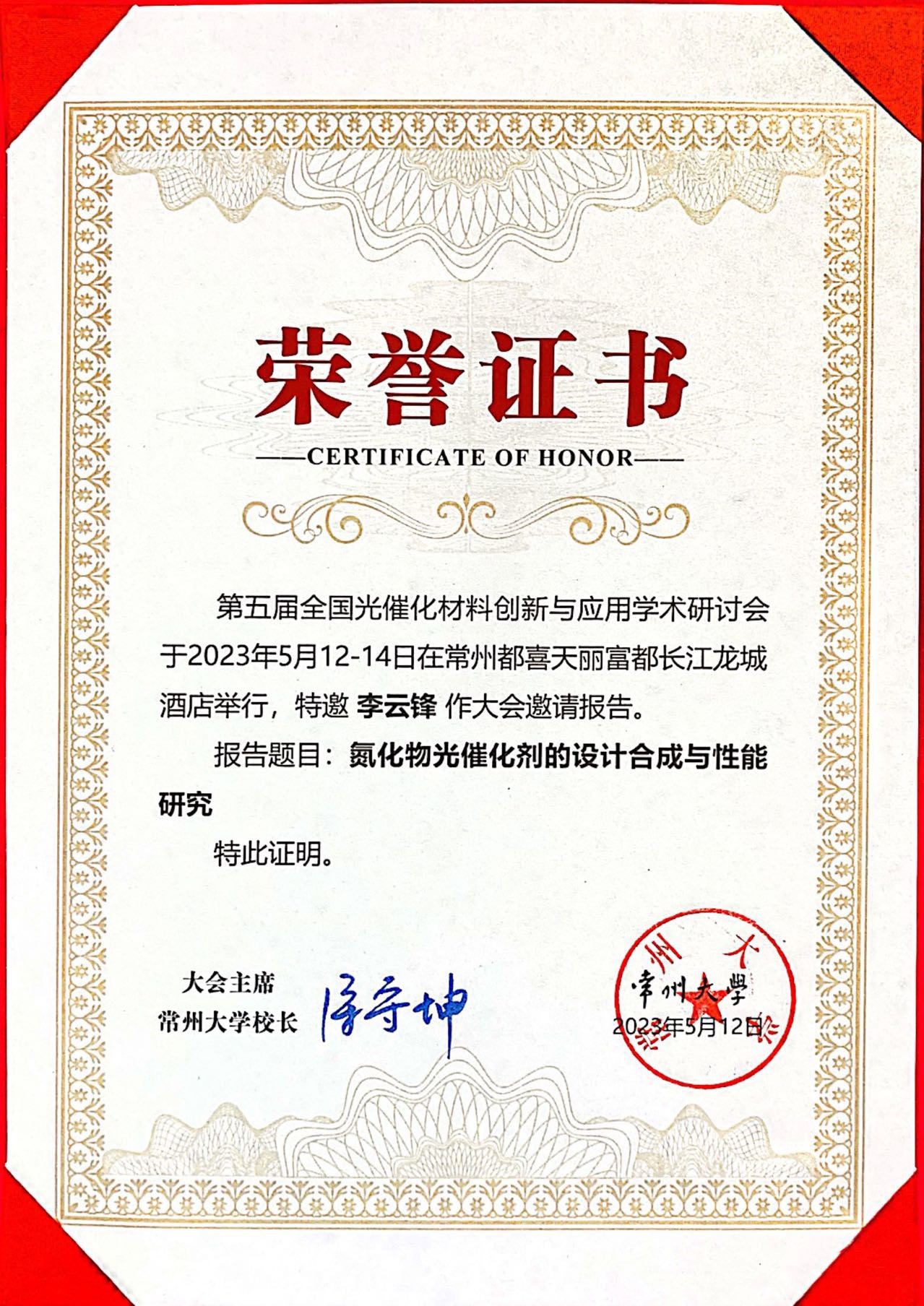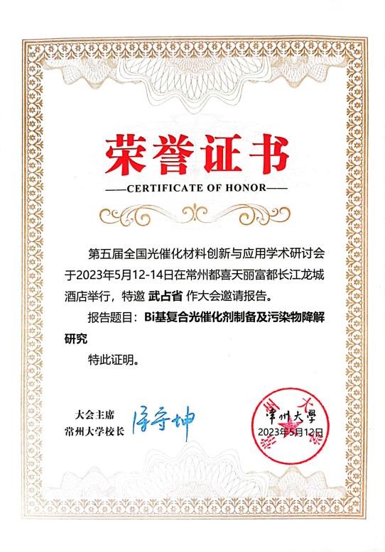 我院武占省教授、李云锋教授受邀参会,并分别在大会上作了题为“Bi基复合光催化剂制备及污染物降解研究”、“氮化物光催化剂的设计合成与性能研究”学术报告。此外,武占省教授作为会议特邀嘉宾主持分会场。会后,围绕着功能光催化材料的开发、碳循环、碳中和等方面和与会专家及代表进行了深入交流与讨论。