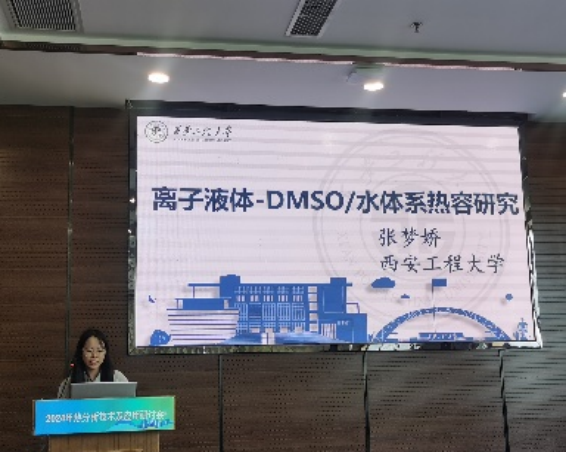 我院侯海云教授指导的研究生张梦娇参加此次会议,并做题为“离子液体-DMSO/水体系热容研究”的学术报告。重点介绍了作为纤维素溶剂的离子液体与其促溶剂DMSO和再生剂水组成的二元体系的热容性质研究,以及从溶液结构方面探讨了分子溶剂对离子液体溶解纤维素的影响因素。该研究有利于助力废旧棉纺织品的绿色回收和高值化功能化应用。报告后,张梦娇与专家学者做进一步交流与讨论。此外,基于报告内容撰写的论文荣获本次会议青年优秀论文二等奖。这充分体现了我校研究生的科研能力和综合素养,也展现了我校化学工程与技术学科与纺织科学与工程学科交叉融合的研究成果。