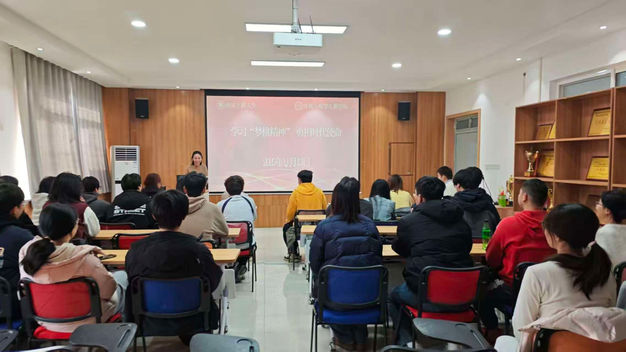 活动中,主讲人系统介绍了赵梦桃同志的感人事迹,生动阐释了“梦桃精神”中爱岗敬业、甘于奉献、团结协作、勇于创新的核心内涵。讲解紧密结合环境与化学工程学科的专业特色与人才培养目标,深入分析了“梦桃精神”在新时代背景下的现实意义与价值引领作用。与会师生专注聆听、深入思考,现场学习氛围浓厚。