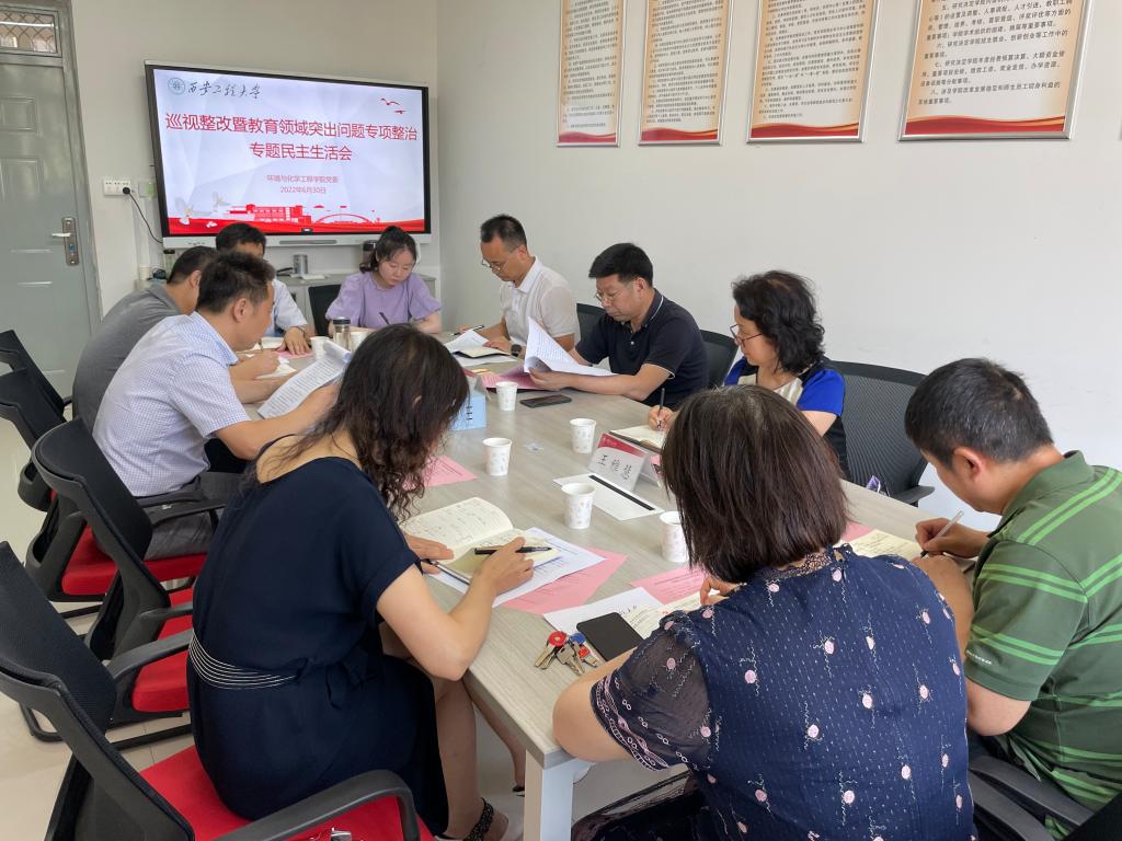 朱永民做总结讲话,他指出,本次专题民主生活会是以十三届陕西省委第十二轮巡视向28所省属高校党委反馈暨教育领域突出问题专项整治为背景,以切实解决学校教育教学中存在的突出问题,推动教育高质量发展为目的而召开。环化学院党委思想上高度重视,准备充分,查摆剖析严格、开展批评坦诚,达到了预期目标。他对学院班子提出三点建议:一是要坚持问题导向,各负其责,把专项整治与巩固党史学习教育成果、深化教育教学改革等有机结合起来;二是要建立问题清单,注重整改。要将梳理查摆出的问题建立整改台账,明确整改措施,切实抓好整改落实;三是要压紧压实责任,务求实效。以此次民主生活会为契机,坚持即知即改、立行立改,切实解决学院发展中存在的问题,助推学院各项事业快速发展。