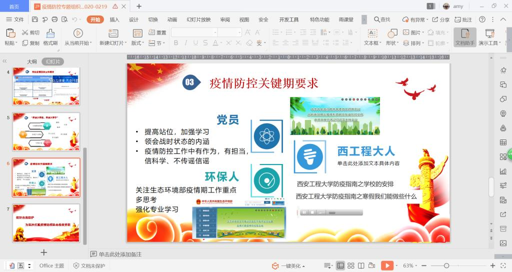 邵瑞华最后对学生党员提出了三个方面的要求:一是作为党员,应该加强学习,提高站位,在疫情防控工作中有作为、有担当、不信谣、不传谣。二是作为西工程大学子,应该服从学校疫情防控安排,在班集体中发挥党员的带头作用,配合学校、学院和班级做好疫情防控工作。三是作为环保人,应关注国家生态环境部疫情防控工作重点,强化专业知识学习,展现历史担当。(撰稿:邵瑞华 审核:李建学)