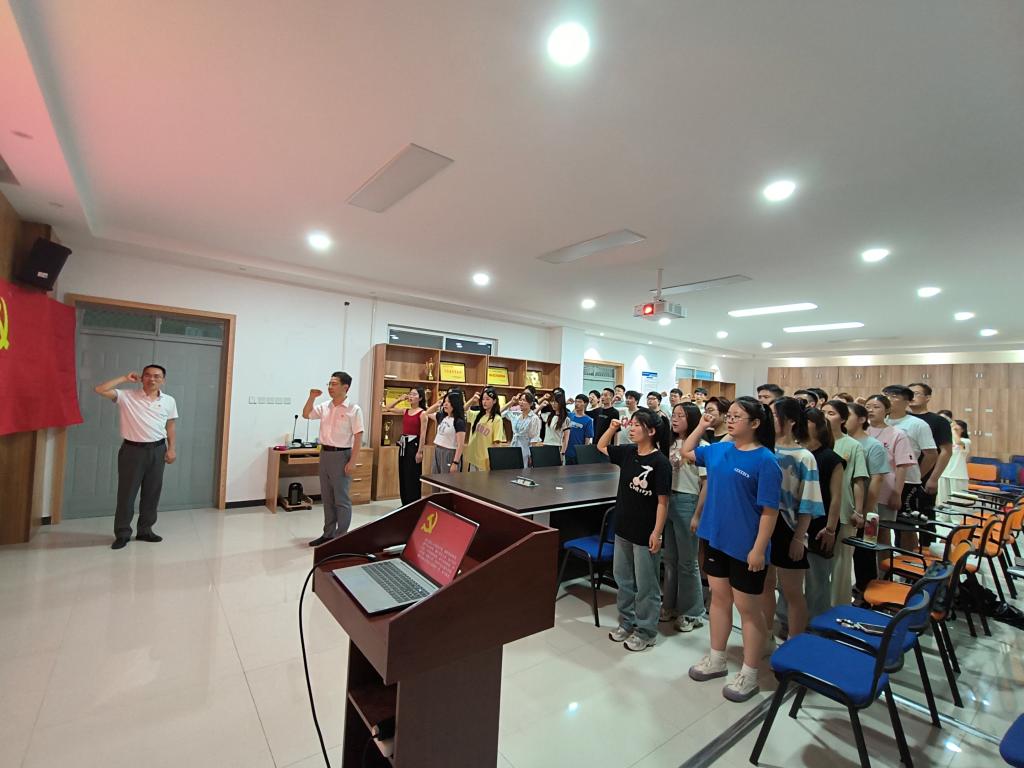 为庆祝中国共产党成立102周年,推进主题教育走深走实,增强新发展党员的自豪感和使命感,6月20日下午,我院在507会议室举行第64期预备党员入党宣誓仪式暨主题教育专题党课活动。