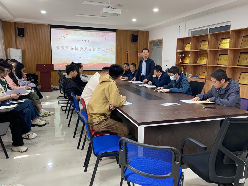 2023年10月10日中午,环化学院绿风环保协会党支部扩大会议在8号楼507会议室举行,出席会议的有环化学院党委书记胡西民、学院副院长兼“绿风”党支部书记武占省、党委副书记林定武、、协会指导老师李庆、李云峰、韩元元等以及“绿风”全体成员。本次会议旨在加强协会党组织建设,提高党员干部政治素质,推动协会事业发展。会议由“绿风”党支部副书记侯康同志主持。