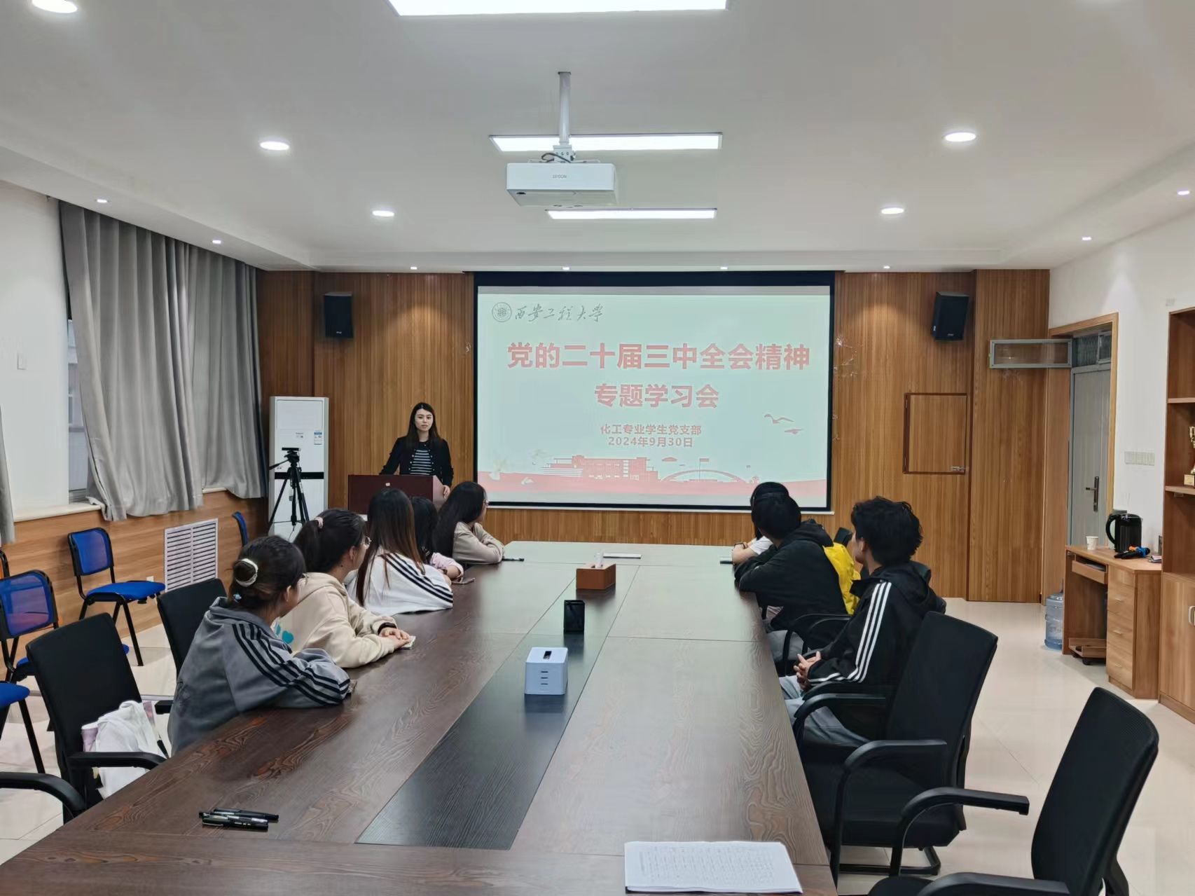 首先,盖潇宇向同学们介绍了党的二十届三中全会的基本情况,她强调,党的二十届三中全会是在以中国式现代化全面推进强国建设、民族复兴伟业的关键时期召开的一次十分重要的会议,不仅为青年学生指明了方向,也赋予了青年一代重要的责任与使命。