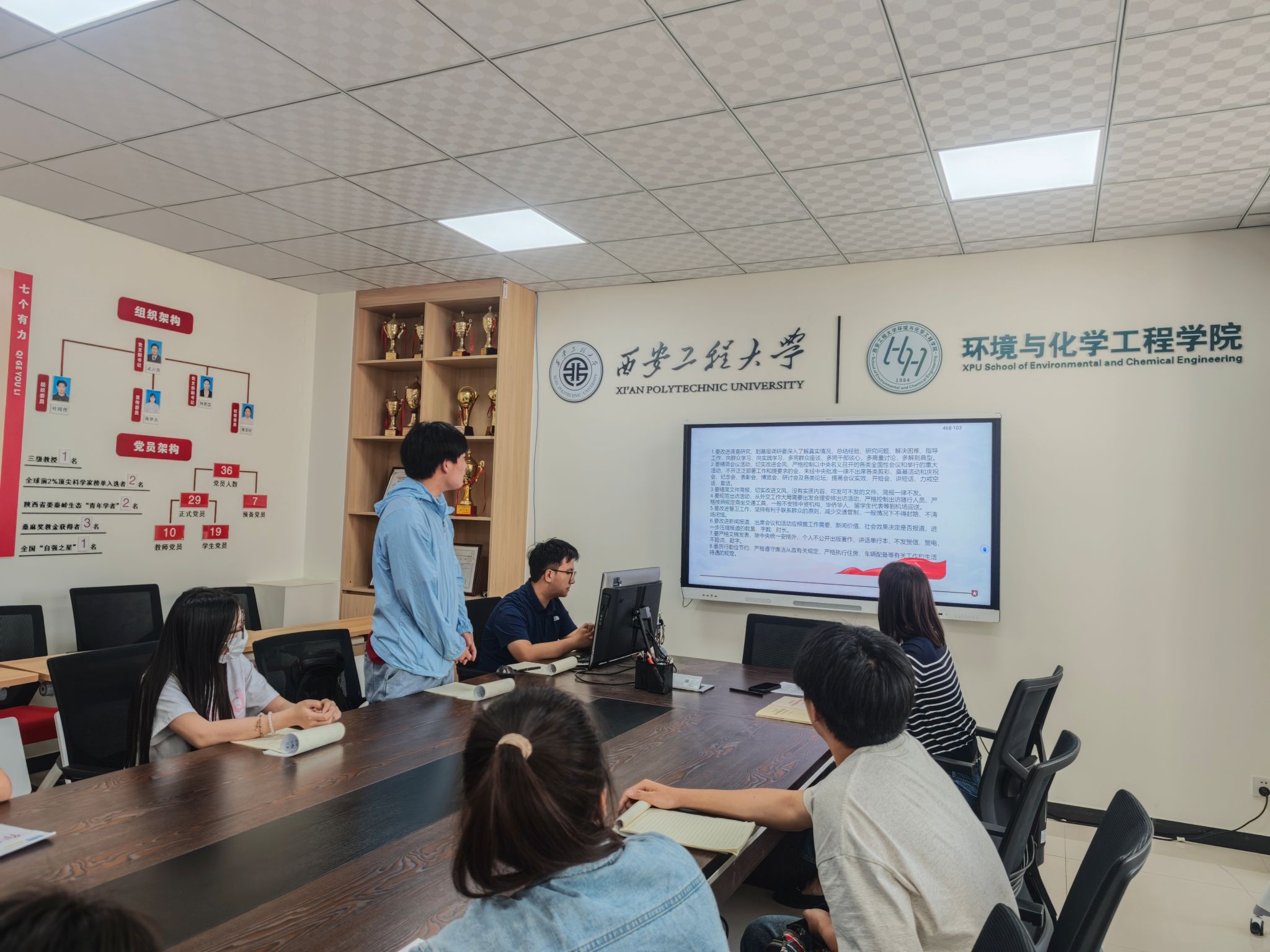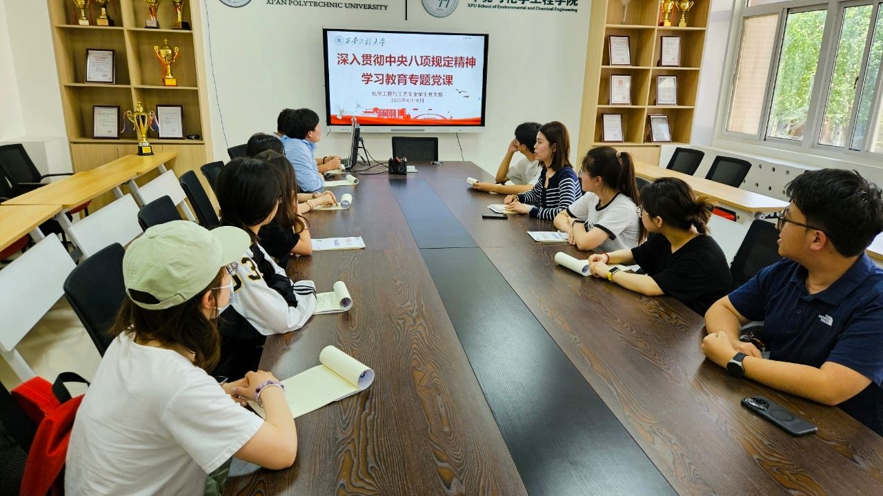 4月10日,我院化学工程与工艺专业学生党支部在环化楼236会议室召开“严守中央八项规定精神,争做新时代合格党员”专题党课,支部书记盖潇宇主讲,支部全体党员参与。