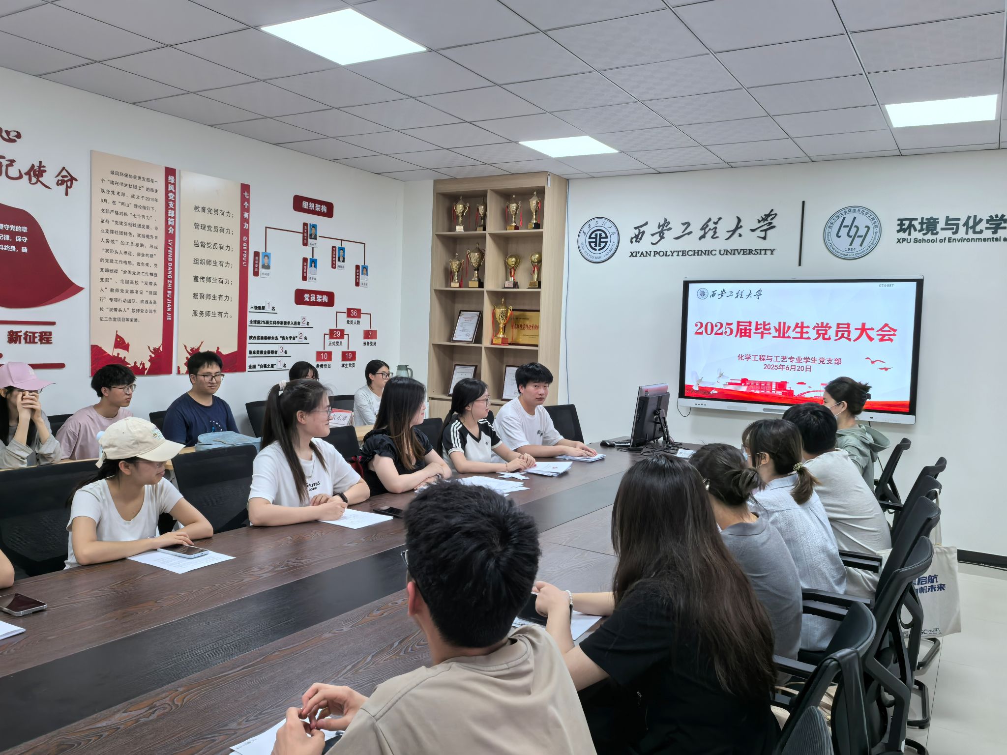 6月20日,化学工程与工艺专业学生党支部在环化楼236会议室召开2025届毕业生党员大会,支部书记盖潇宇主持会议,支部全体学生党员参加。