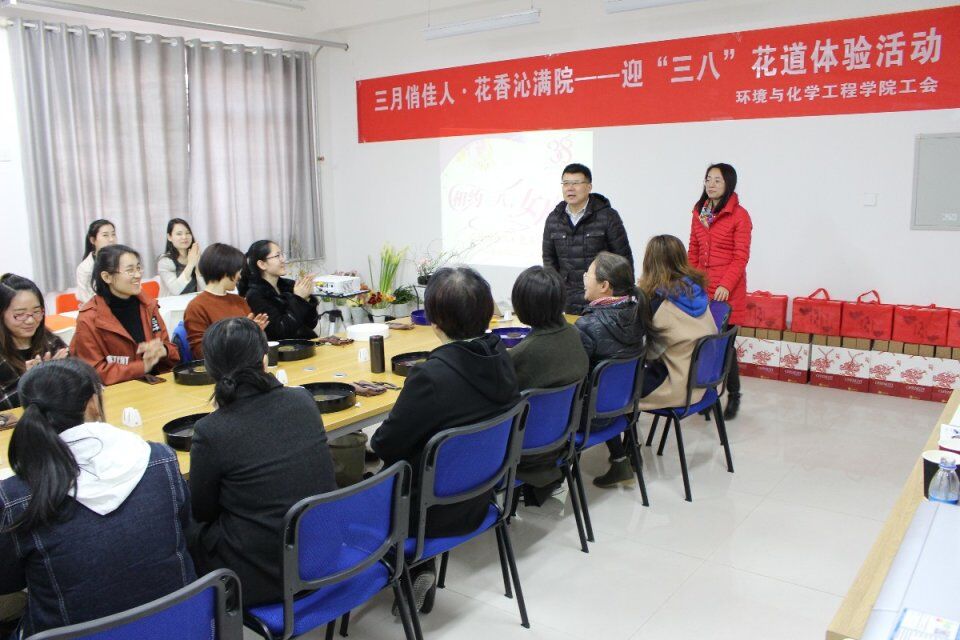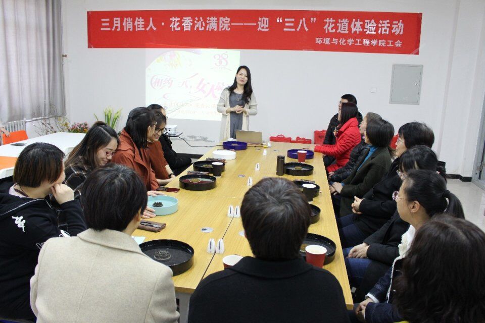 为迎接第109个“三八”国际劳动妇女节,进一步丰富我院女教职工的文化生活,环化学院工会于3月7日下午在8号楼职工小家举办了“三月俏佳人·花香沁满院,迎‘三八’花道体验活动“。活动邀请了花道培训师陈可云作为主讲老师,学院工会主席邵瑞华主持了活动。