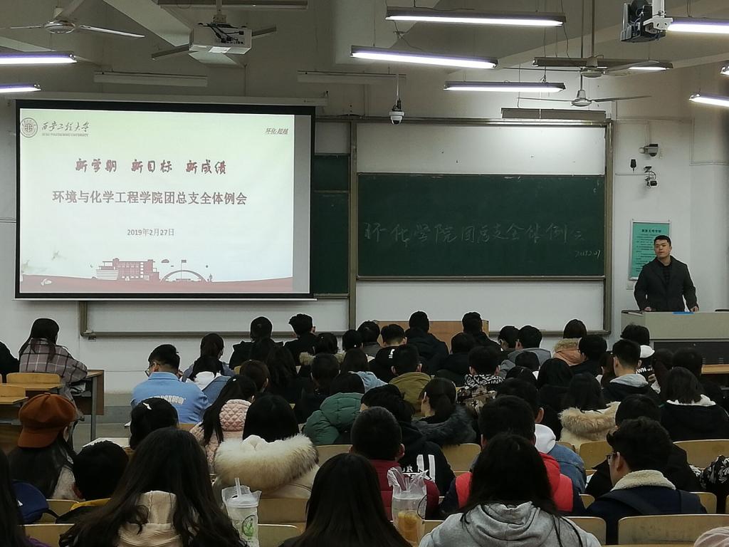 2019年2月27日,环化学院团总支在临潼校区B栋133教室召开新学期第一次全体例会。学院团总支、学生会、科技协会、“绿风”环保协会、化学趣味社、译心心理社、弘毅励志社、生命之树社团全体成员出席会议,会议由学院团总支书记贾天昱主持并讲话。