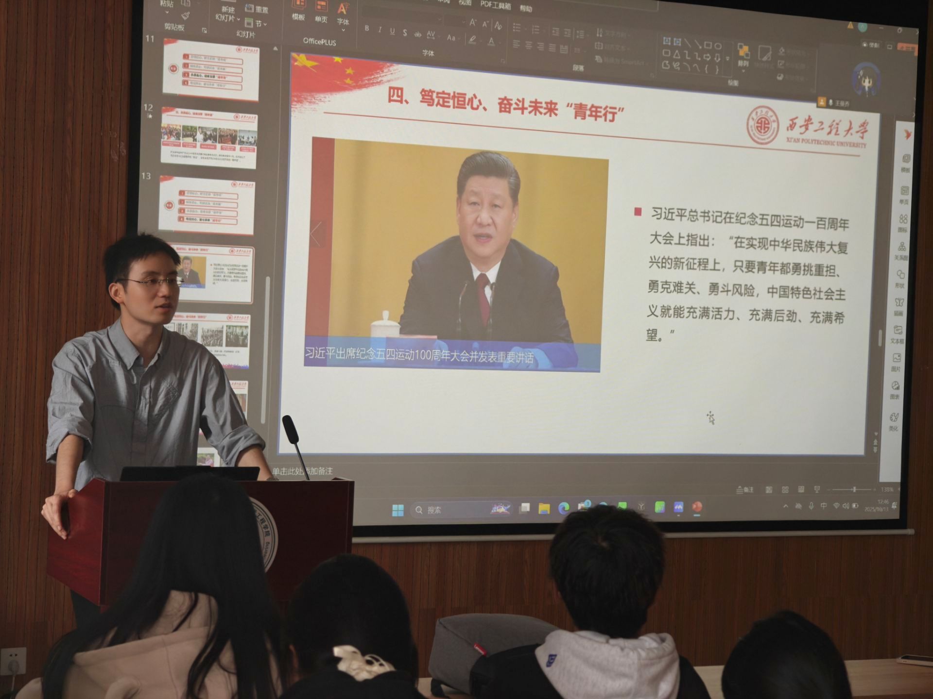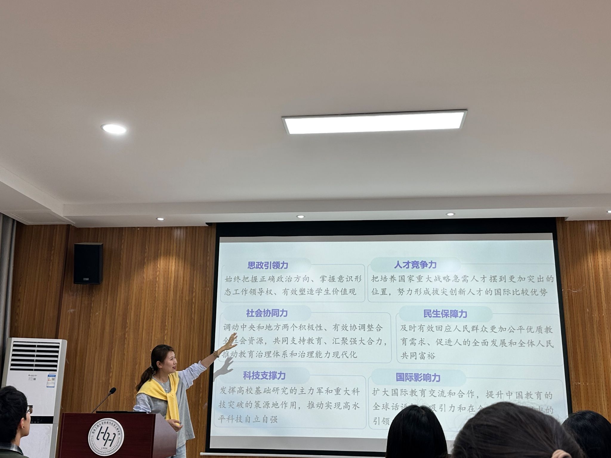 本次团课培训围绕多个核心主题展开,内容充实且层次分明。课程伊始,学工办主任朱瑾以“新征程路上的坚守”寄语团员不忘初心;辅导员盖潇宇结合生态文明思想,阐释青年在绿色发展中的使命担当;学院团委副书记张易泽以“做好新时代青年和共青团工作的根本遵循”为切入点,从初心、匠心、真心、恒心四个层面引导青年树立正确的成长航向;辅导员任子瑜聚焦团员本色,强调先锋模范作用的发挥;辅导员吕国正借九三阅兵的历史记忆,筑牢团员的民族自信根基;学院团委书记刘婧则立足教育强国建设,明晰青年成长与国家发展的紧密联结。