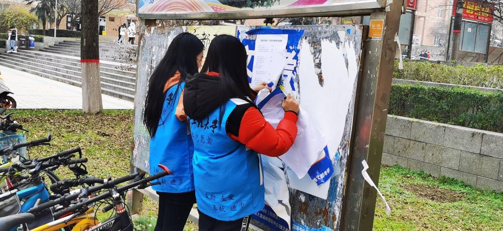 活动伊始,由各组组长组织签到,并告知队员一些安全注意事项,对其进行明确分工。拿到工具后,各组按照指定安排开展工作。尽管天气微凉,但同学们热情不减,努力把自己的工作做好。在打扫宣传栏的过程中遇到许多难题,如宣传栏灰尘的清理,玻璃的擦拭等,但在摸索中他们逐渐理清头绪,清理工作步入正轨。全体志愿者以手撕或工具清理广告、海报,并进行垃圾分类,配合默契、踏实肯干、参与积极,充分展现不怕苦、不怕脏、不怕累的志愿精神。最后,参与人员整理工具并在集合地点合影留念。至此,本次清扫宣传栏活动圆满结束。
