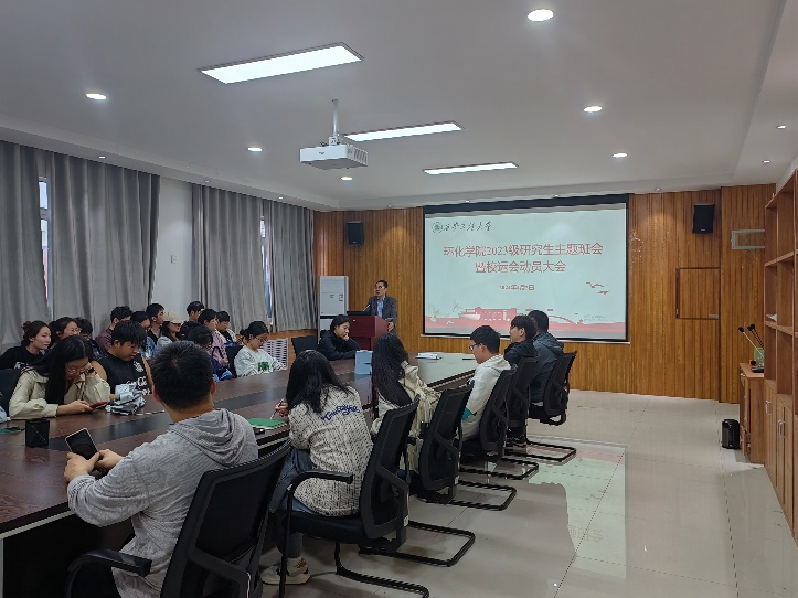为了进一步增强研究生班级凝聚力,提升学生安全防范意识,4月2日,在环化学院507会议室召开2023级研究生主题班会暨校运动会动员大会,学院党委副书记林定武及23级全体研究生参加了班会。