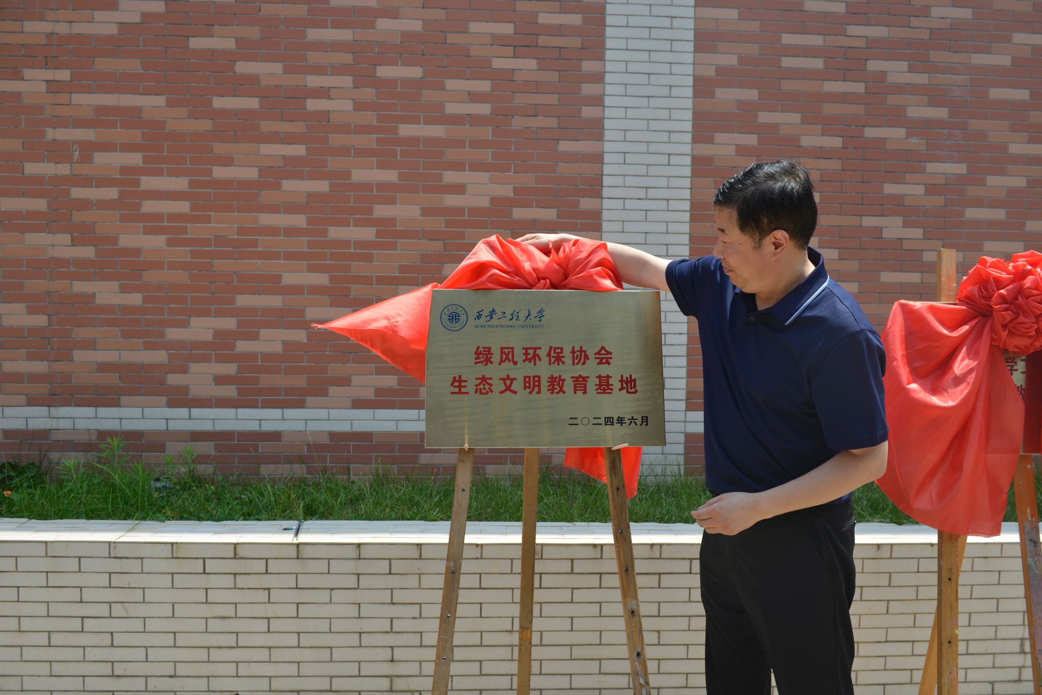 殷永建代表学校对两家单位联建教育基地揭牌表示祝贺,他在讲话中指出,基地的挂牌建设是我校认真贯彻落实党的二十大精神和习近平总书记历次来陕考察重要讲话重要指示精神的有力举措,是深入践行习近平生态文明思想,推动生态文明教育融入高校育人全过程的具体行动,更是促进学校“五育并举”育人成果落地见效、行稳致远的有效手段。他强调,扎实推动产学研深度融合对落实教育、科技、人才“三位一体”协同发展、培育壮大新质生产力至关重要、意义深远,学校高度重视为学生搭建科研实践平台,先后联合校内外企业、单位成立了多个产学研实践基地、劳动教育基地,为提高学生综合素养提供了重要保障。他希望,环化学院和后勤管理处(集团)要畅通合作机制,充分发挥科技创新的支撑引领作用,以联建基地为契机,多管齐下培育适应社会需求的新时代大学生,绿风环保协会广大青年要牢固树立生态文明理念,在实践中感悟,在感悟中思考,在思考中行动,努力书写我校学子助力美丽中国建设的新篇章。