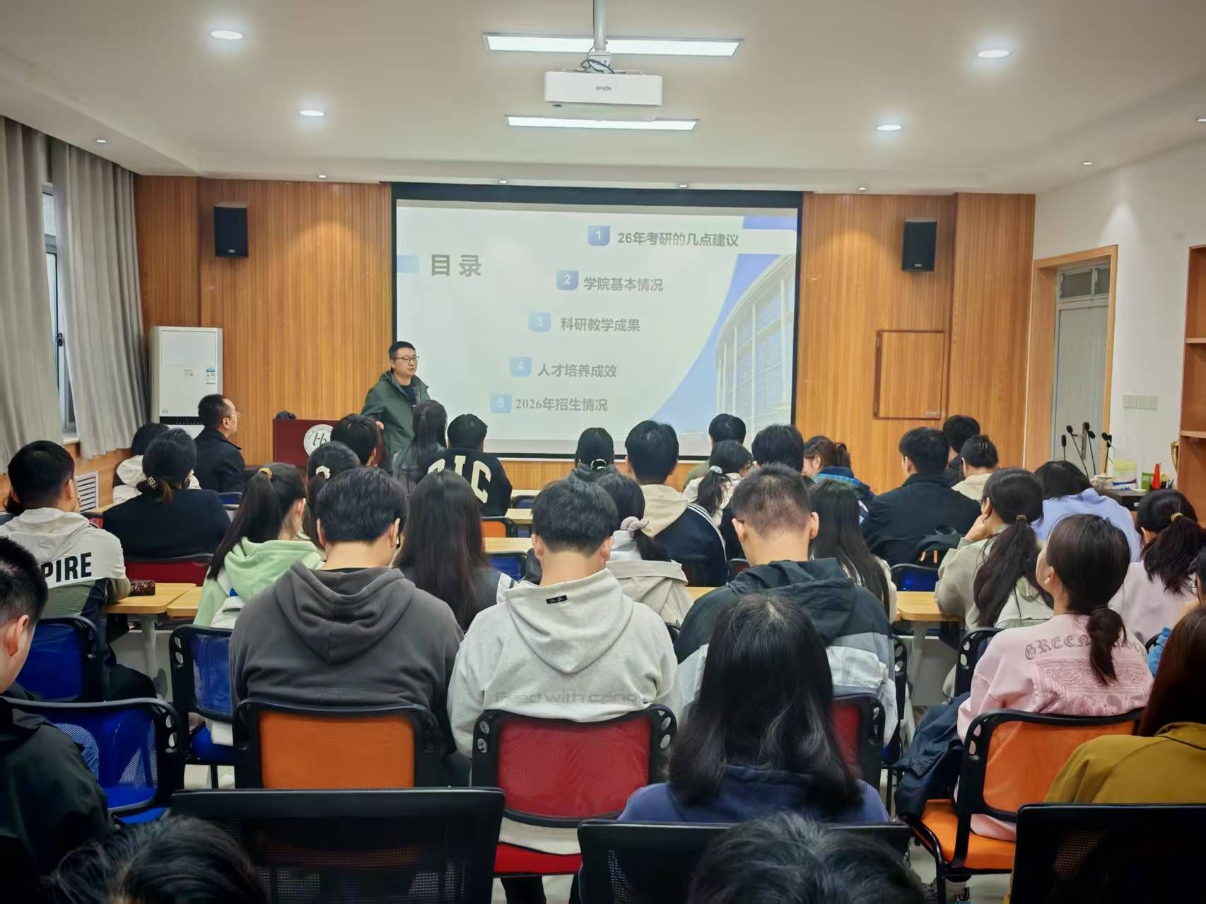 本次考研指导讲座内容充实,针对性强,现场气氛热烈,不仅为正处于迷茫期的学子指明了方向,也体现了学院始终坚持以学生为中心的工作理念,通过提供从目标选择、策略指导到心态调整的“一站式”精准就业指导服务,扎实推进“三全育人”工作体系,助力学生成长成才。