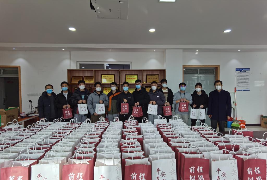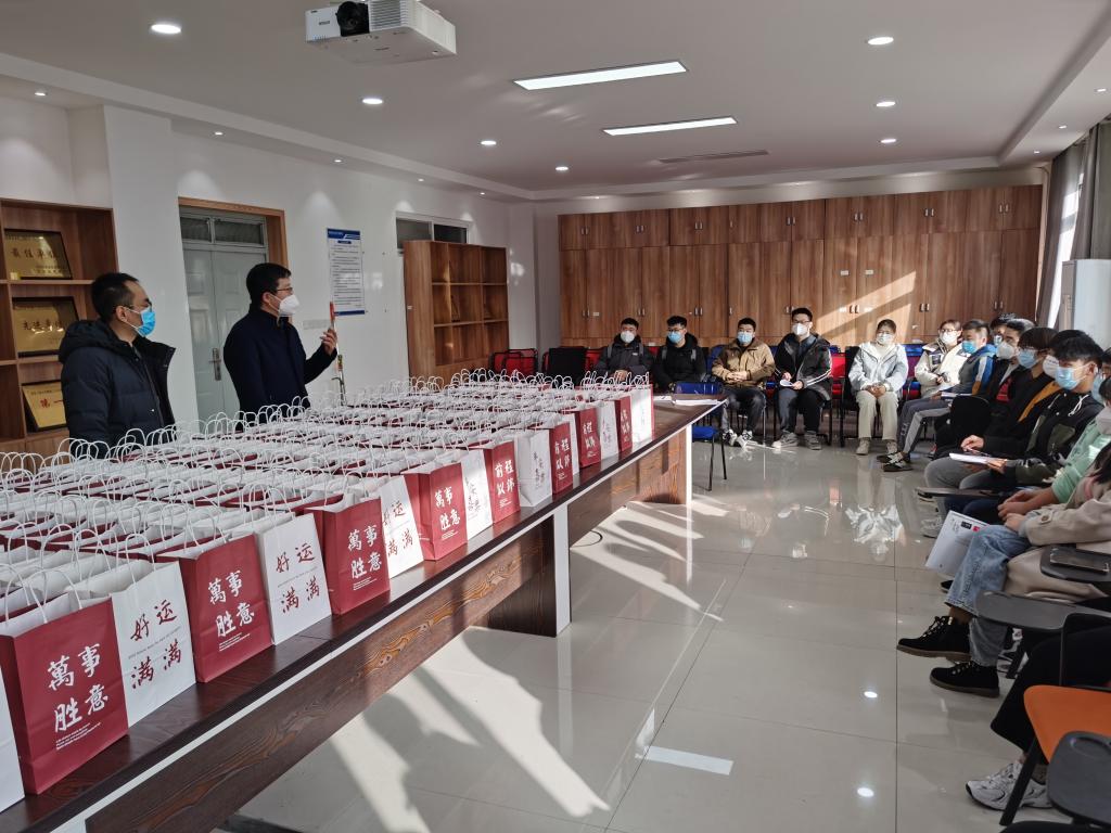 一“研”为定,温暖同行。在2023年全国硕士研究生入学考试倒计时的最后阶段,为帮助考研学子增强信心,舒缓压力,以更加积极平和的心态迎接考试,我院于2022年12月12日在环化楼507会议室举行2023届考研学子福袋发放仪式,学院副院长武占省、党委副书记林定武、团总支书记贾天昱及2019级考研学生代表们参与此次活动。