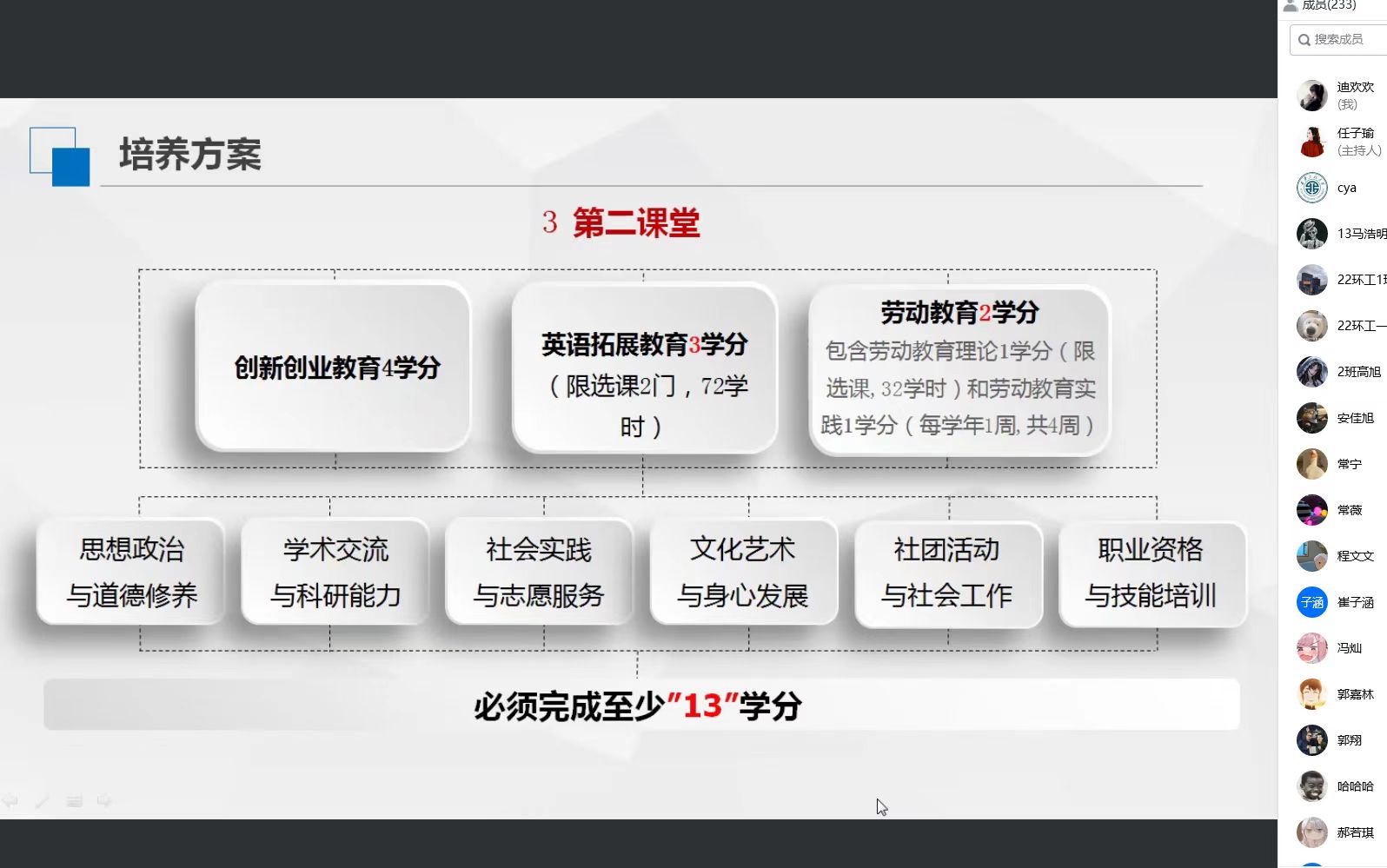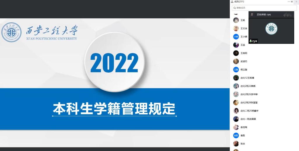为帮助2022级新生尽快了解学籍管理规定,更好地规划大学学习生活,我院于9月11日上午以线上腾讯会议形式,召开2022级新生学籍管理规定宣讲会。本次宣讲会由副院长常薇主持,教务科党琳宁主讲,全体2022级本科新生参加了会议。
