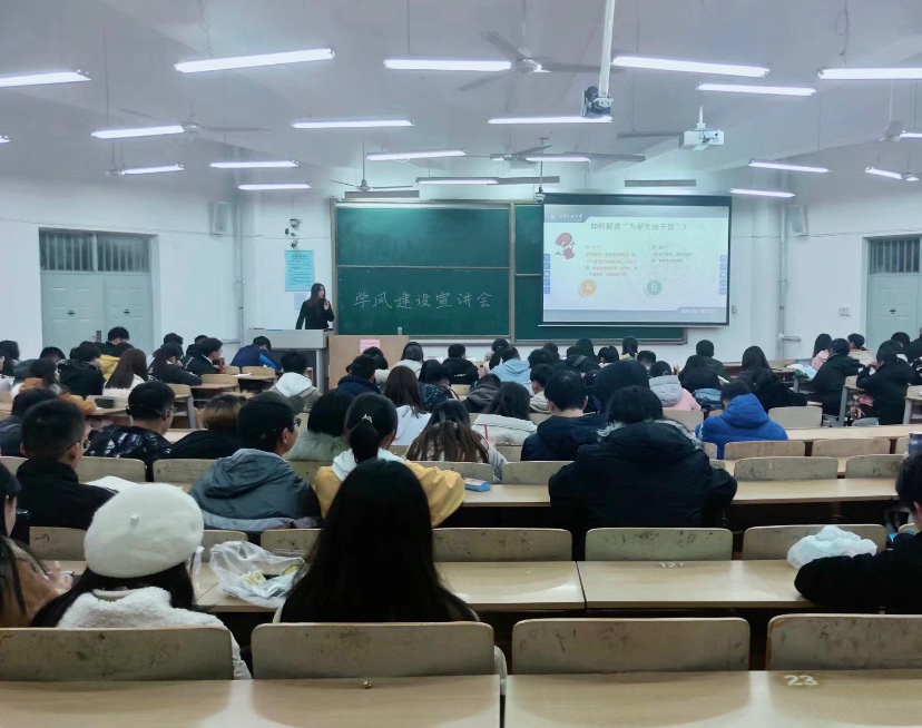 为加强学院学风建设,倡导诚信考试 ,我院于12月19号在B座教学楼133教室召开学风建设宣讲会及考风考纪动员。会议由2019级辅导员刘梦雅主持。