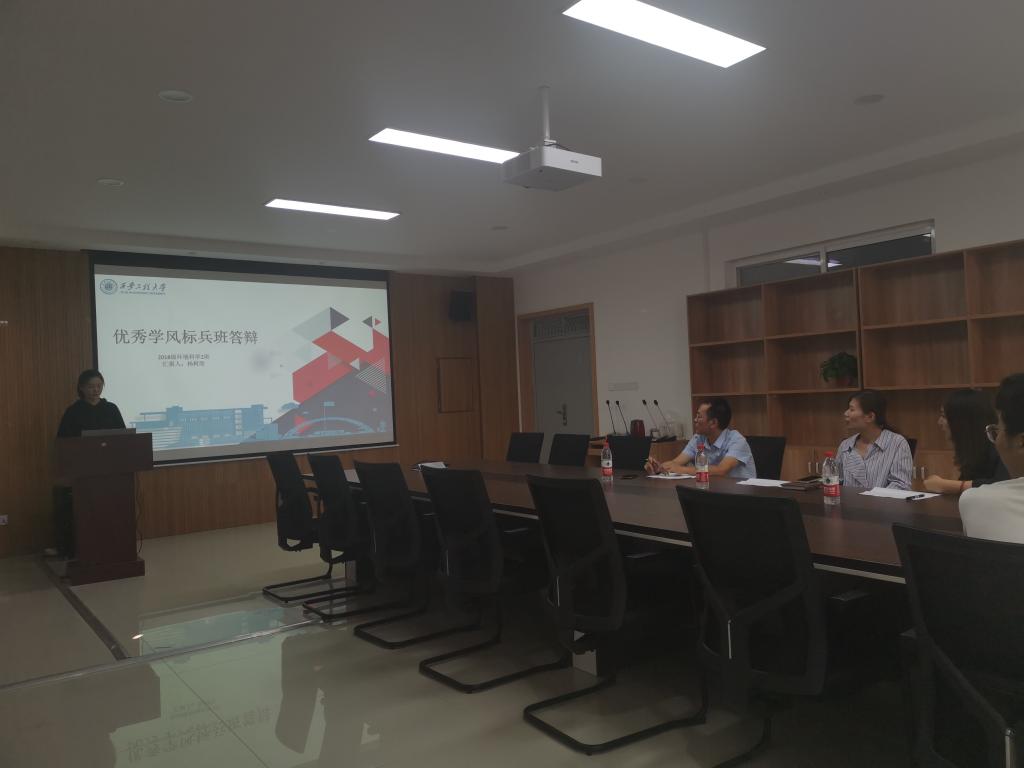 为营造“比、追、赶、超”的学习氛围,提升学风建设水平。9月27日下午,环化学院于8号实验楼507会议室成功召开“优良学风标兵班”答辩,学工办主任林定武、各年级辅导员及各班学生代表参与此次答辩会。