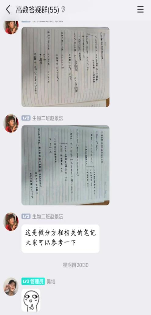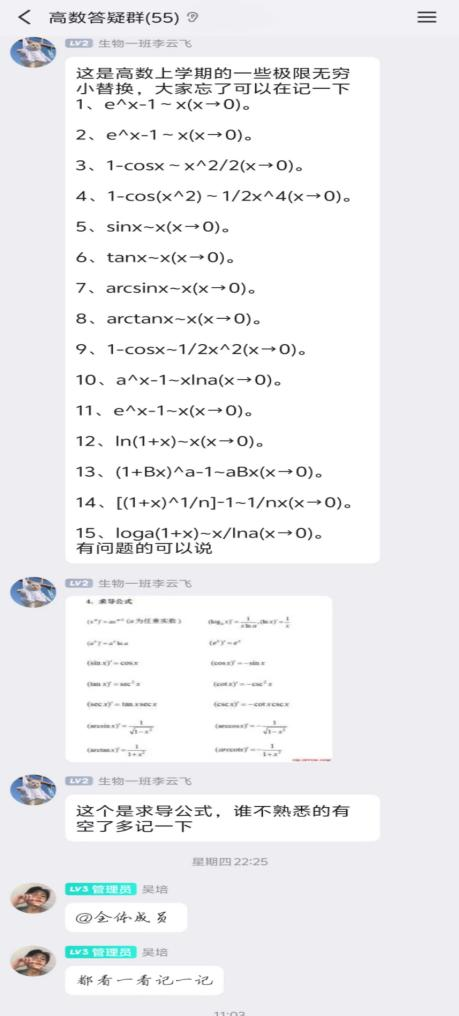 辅导过程中,三位主讲同学(左高强、赵景沄、李云飞)对高等数学章节之间的关联与抽象概念进行了串联与讲解,为同学们系统的归纳和总结相关知识点、重要公式以及常见题型的解题思路。同时,积极分享了自己在学习高数时的方法和经验,紧密围绕高等数学知识点重难点把握以及查漏补缺等相关内容进行分享。同学们听得津津有味,针对学习中存在的困难和疑惑,不少同学还主动提问、虚心请教,三位主讲同学都一一耐心地分享与解答。