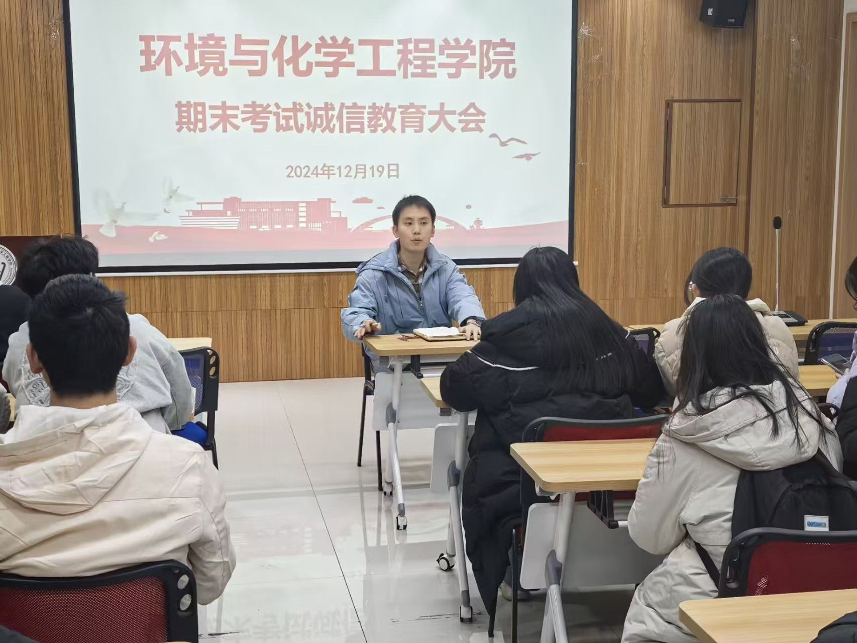 为加强学风建设,进一步树牢诚实守信的意识,12月19日,我院在环化学院507会议室召开2024级期末考试诚信教育大会,2024级全体班长、团支书、学习委员参会。会议由24级辅导员张易泽老师主持。
