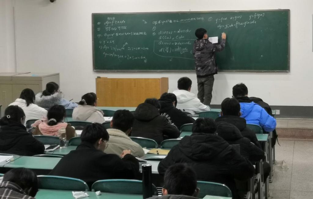 在晚自习时间,获得国家励志奖学金并且成绩优异的大二大三学生利用晚自习时间到教室为大一同学讲解高等数学,无机化学。同学们做题中遇到的问题也可以进行询问。学长学姐耐心讲解,同学们认真听讲。