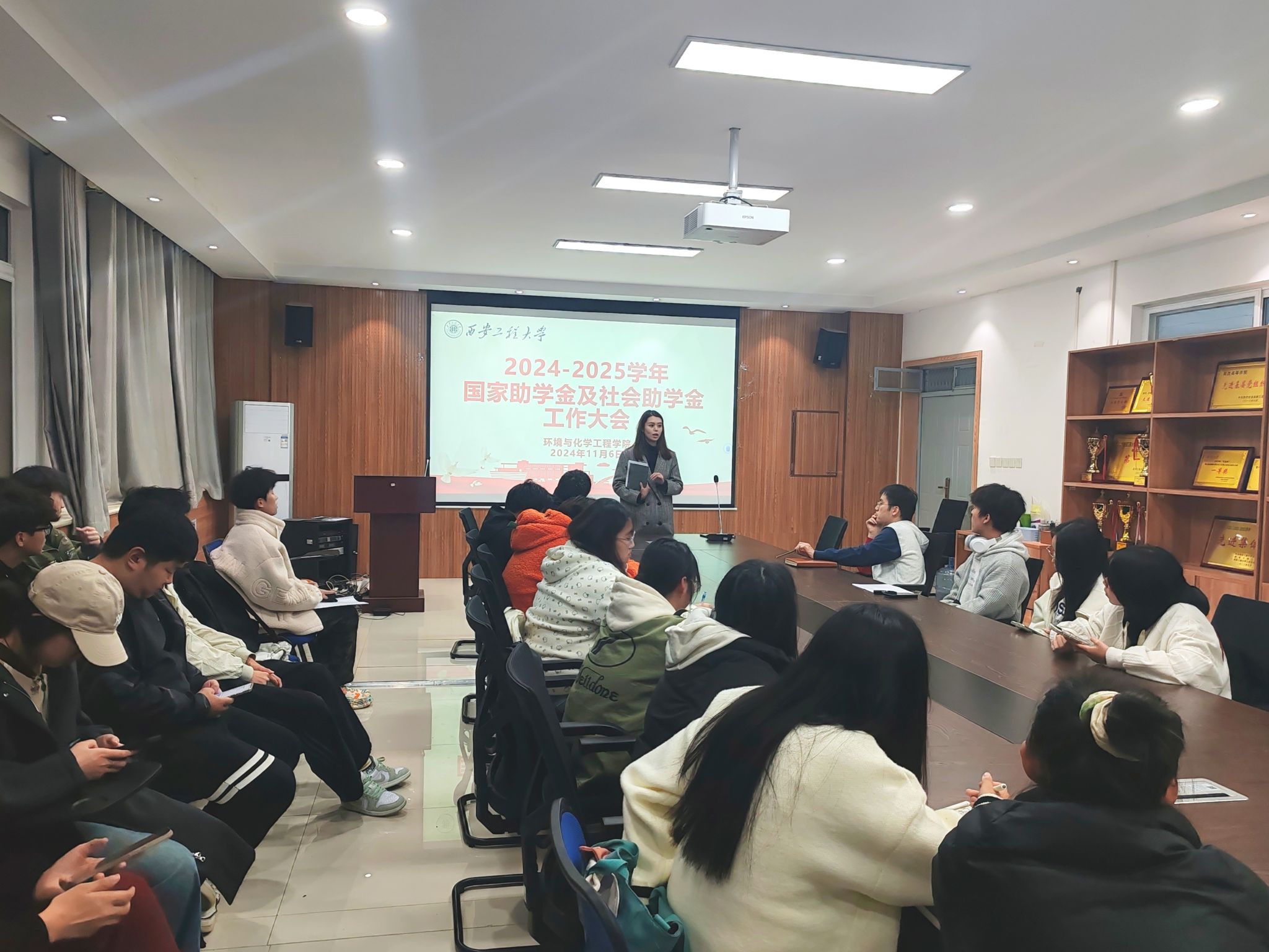 为了进一步加强资助政策宣传力度,规范本科生奖助学金评定程序,夯实资助育人成效,11月6日,我院在环化楼507召开2024年本科生奖助学金评定工作大会,资助专项辅导员盖潇宇,各年级班长、团支书和评议小组代表参加会议。
