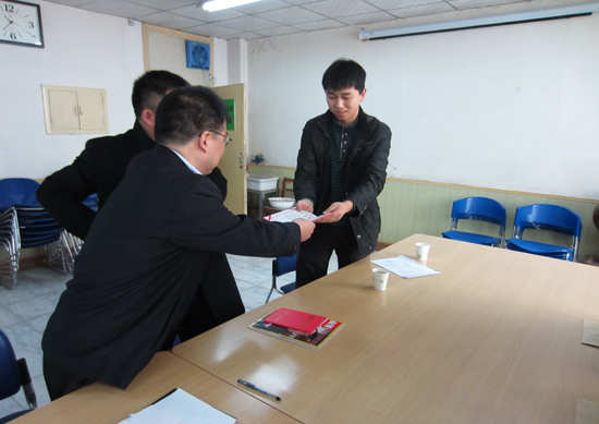 首先由两位贫困学生介绍了个人学习、生活状况,王二斌经理听完学生汇报后说,希望贫困学生面对困难不要有太多压力,希望自己的资助能帮助他们正常、安心的生活和学习,使他们顺利完成学业,做一个对社会有用的人才。”