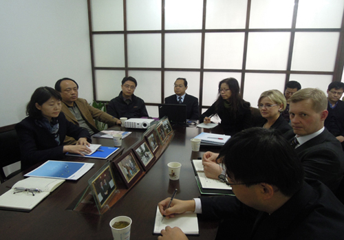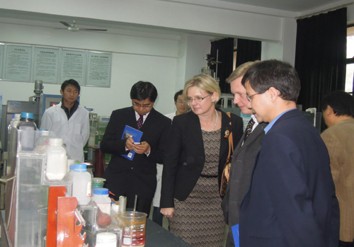 凯米拉集团一行还与我院化工系、环工系、生物系的部分教师进行了座谈。海蒂.法哲霍姆博士介绍了凯米拉集团情况,科研处处长孙卫国介绍了我校科研情况,狄育慧副院长介绍了我院在水污染控制及环境保护等方面的师资、科研等情况,双方就下一步的科研合作做了深入细致的交流。随后邀请凯米拉的贵宾参观了我院分析测试中心、水污染控制实验室、给水排水实验室、空气净化实验室、通风与除尘实验室等。