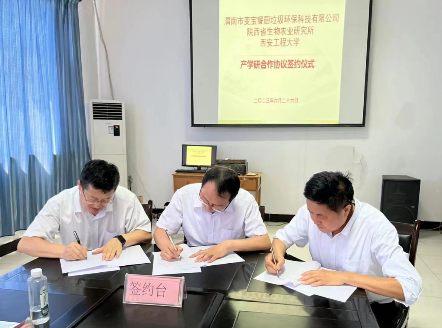 为推进校企合作,创新人才培养模式,拓宽专业与行业、企业合作渠道,为学生提供优质的实践平台,6月26日下午,学院副院长武占省、生物工程系主任王晓军与陕西省生物农业研究所副所长李本光、研究员陈卫峰共同前往渭南市变宝餐厨垃圾环保科技有限公司开展合作交流。