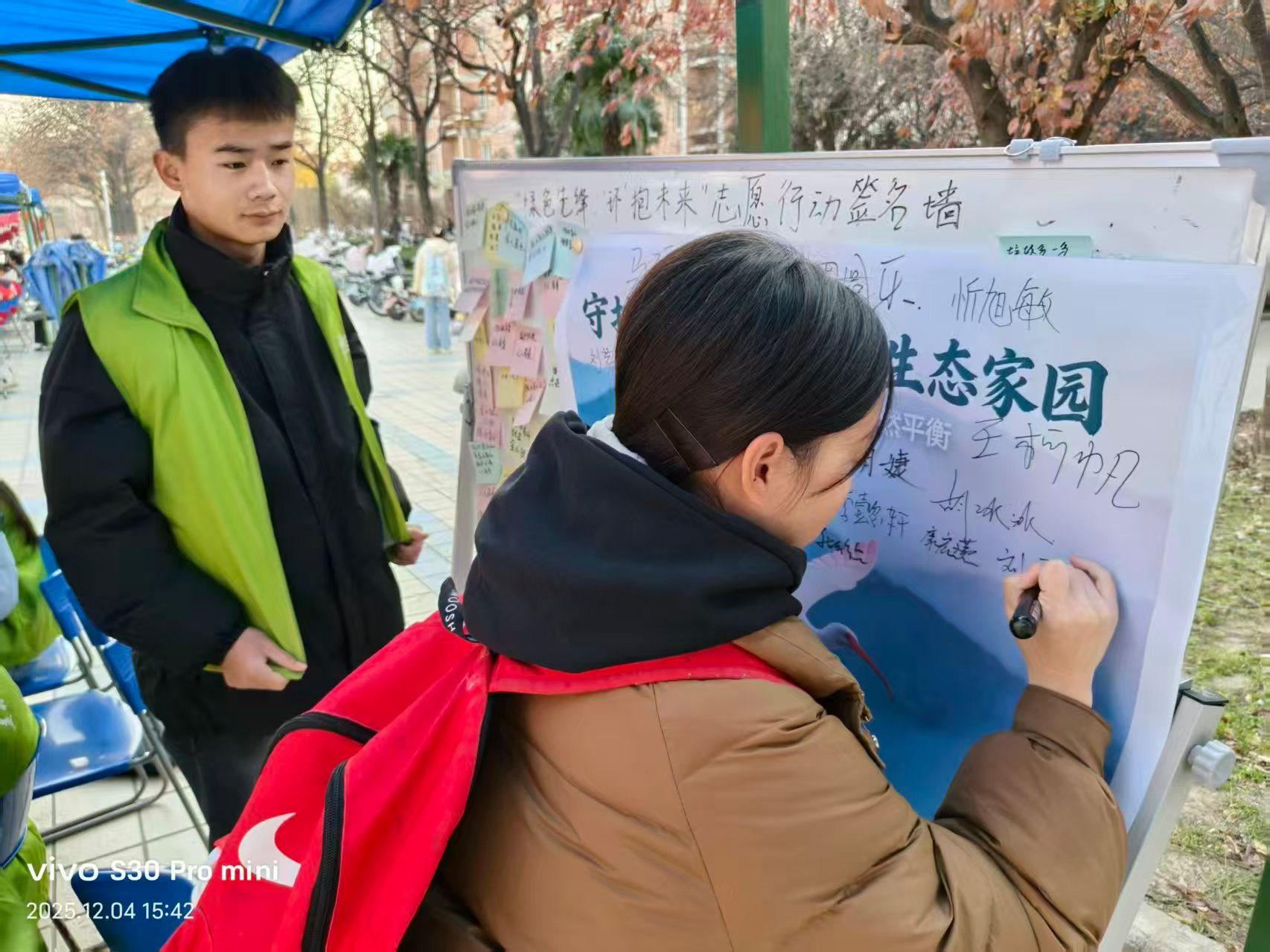 随后,同学们纷纷在志愿墙上签名,承诺以实际行动支持生态保护。志愿者也向在场同学发出倡议,呼吁从日常小事做起,践行绿色生活,携手守护秦岭生态环境。