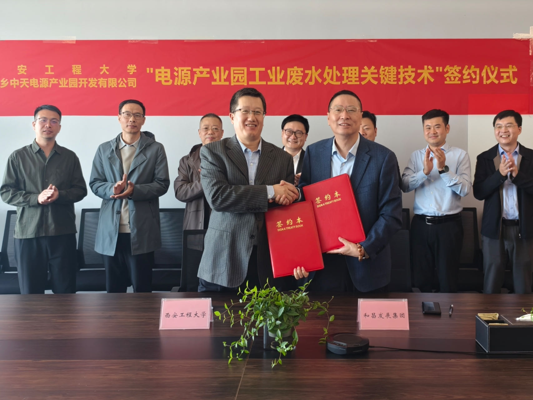 2024年10月29日,我校国内合作与校友工作处处长郭可义、Taptap点点(188改名)副院长(主持工作)武占省、环境技术研究&应用团队程刚教授、王理明、敖冬等一行前往和昌发展集团参加“电源产业园工业废水处理关键技术”项目签约仪式。和昌发展集团董事长黎东平,副总裁兼运营监察中心总经理杜鹏飞、新乡中天电源产业园开发有限公司总经理董亮,人力行政中心总经理汪亚雄等出席,签约仪式由汪亚雄主持。