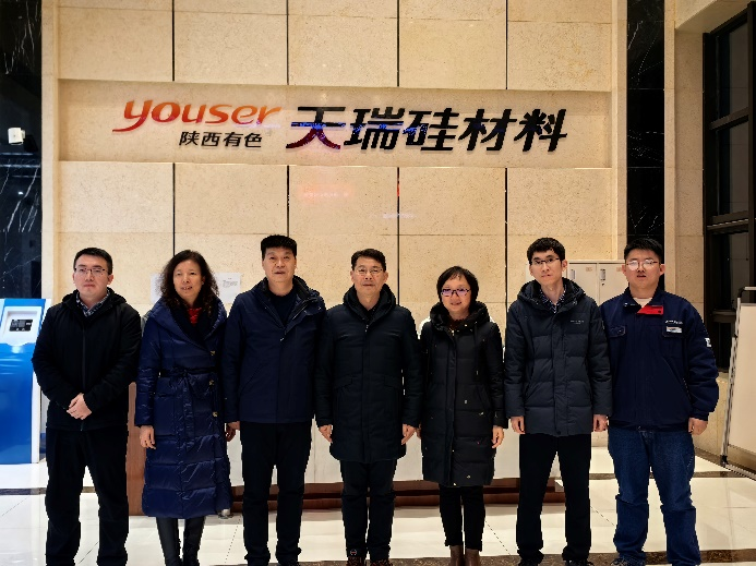 随后,胡西民一行来到天宏瑞科硅材料有限责任公司就深化校企合作,共讨未来发展进行考察交流。陕西有色天宏瑞科硅材料有限责任公司副总经理陈晓冬、公司人力资源部经理、硅烷生产部副经理以及我校在岗校友陪同出席此次座谈会。会上,天宏瑞科硅材料有限责任公司副总经理陈晓冬对我院调研组表示热烈欢迎,并详细介绍了企业发展历程、经营理念、生产经营状况以及项目建设进展。他指出我院多年来为公司输送了许多优秀人才,为公司发展发挥了重要作用,双方应该相互支持、深化交流、务实合作,共同为行业的发展贡献力量。我院党委书记胡西民对公司在多晶硅产业及新能源领域的成就给予了高度评价,表达了加强校企合作、推动产学研融合高质高效发展的意愿。副院长常薇就我校教育教学资源、毕业生信息、科研实力、师资力量以及未来人才培养方向等方面作了详尽介绍。常薇表示,希望通过加强双方合作,建立有效校企联动机制,推动人才交流与技术合作,为企业和高校发展注入“人才新动能”。