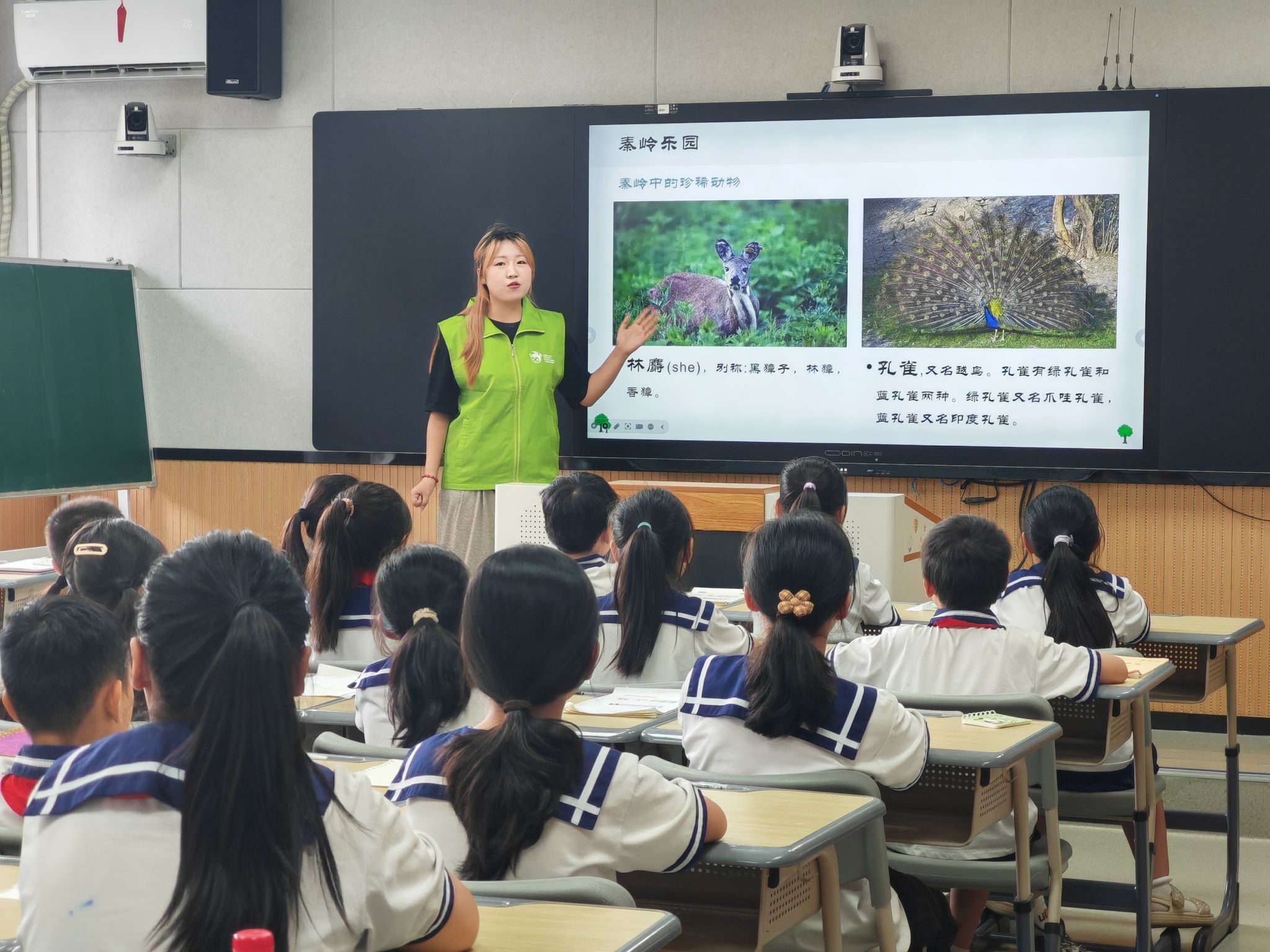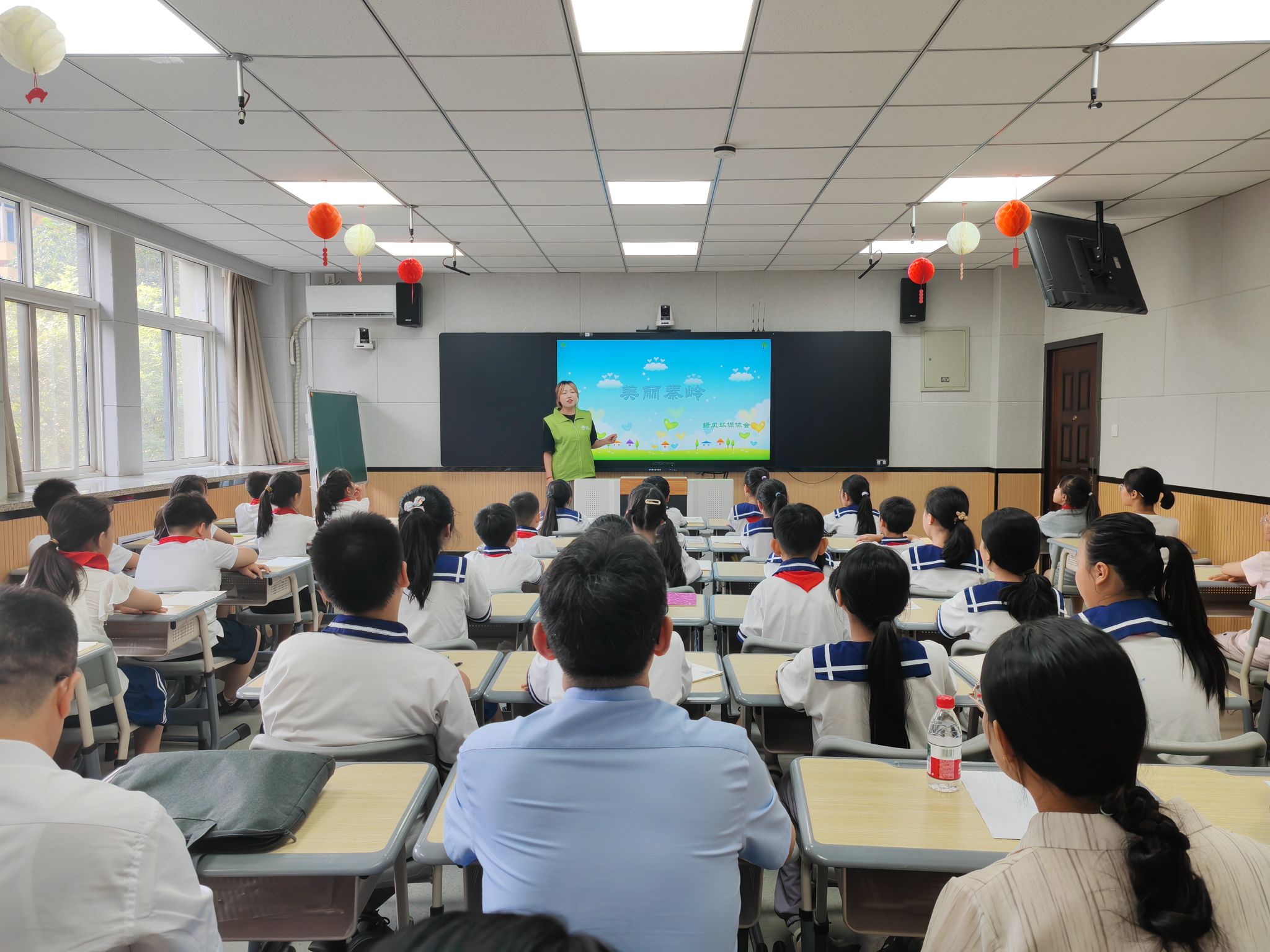仪式结束后,环化学院绿风环保协会志愿者马健容同学走进录播教室,为仁厚庄小学的孩子们带来了一堂别开生面的趣味环保课。在20分钟的课堂时光里,她以灵动的视频画面展现自然之美,用妙趣横生的情景问答点燃求知热情,将“垃圾分类”的科学方法、“水资源保护”的重要意义,巧妙编织进日常生活场景中。课堂上,孩子们踊跃举手发言,眼神中满是对环保知识的渴望与对绿色未来的憧憬。
