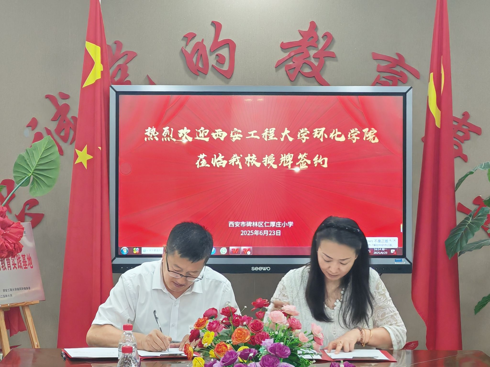 为深入贯彻落实习近平生态文明思想,增强青少年生态保护意识与实践能力,共同探索大中小学思政一体化协同育人模式,6月23日下午,我院赴碑林区仁厚庄小学开展“青少年生态文明教育实践基地”暨“党建+志愿服务基地”授牌签约仪式。学院党委书记胡西民、副院长(主持工作)武占省、党委副书记林定武、学院部分教师代表和绿风环保协会志愿者代表出席活动。此次活动由仁厚庄小学德育主任车翻莉主持。