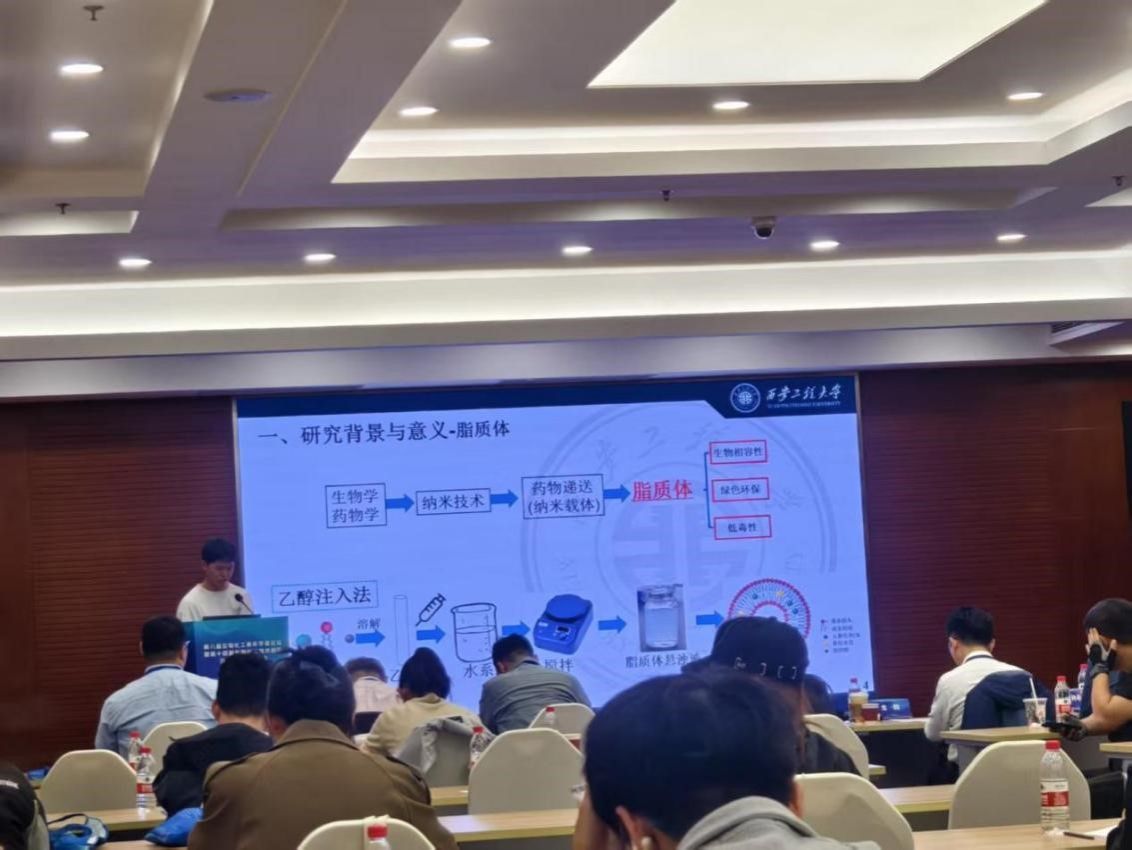 研究生刘雨婷在会议上分享了“高载人参皂苷CK羧甲基壳聚糖纳米粒子的制备及其抗肝癌活性研究”的学术报告,阐述了具有肿瘤靶向聚集和释放性能的纳米粒子使HepG2细胞存活率从58.63%降至46.04%,其抑癌效果显著增强。